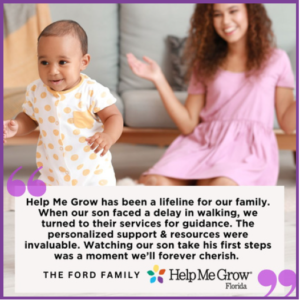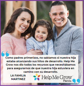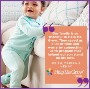When my baby Mia started to lose weight because she struggled to eat, I knew it was time to ask for help. Help Me Grow Florida referred Mia to a pediatric feeding and swallowing program. The HMGF Care Coordinator patiently explained how feeding therapy could work hand-in-hand with Mia’s pediatrician to get her eating and weight back on track. Without HMGF, I would never have known feeding therapy existed or been connected to services.