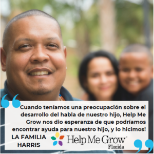 I’ve always thought my son David was perfect, so I was shocked when his pediatrician referred him to Help Me Grow Florida for a free, developmental screening. I was so sure that David was fine that I declined the free screening. The HMGF Care Coordinator called back every few weeks to gently ask if I had changed my mind about a screening and patiently offer assistance with any other basic needs. After several conversations with the Care Coordinator, I realized that I’d want to know if there was a concern and finally agreed to have David screened. In the end, the screening did indicate a concern and David was referred to school-based services. Today he is thriving. I’m so grateful that the Care Coordinator was persistent and kept following-up with our family.